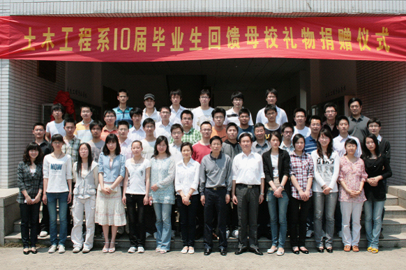 5月24日中午,土木工程系在物理实验楼大厅隆重举行了“2010届毕业生回馈母校礼物揭幕仪式”。公司经理助理陆志东,土木工程系党总支书记王锦麒,学办副主任石城,土木系全体辅导员老师及10届毕业生代表出席了仪式。揭幕式由土木工程系分团委书记孙琳玲主持。