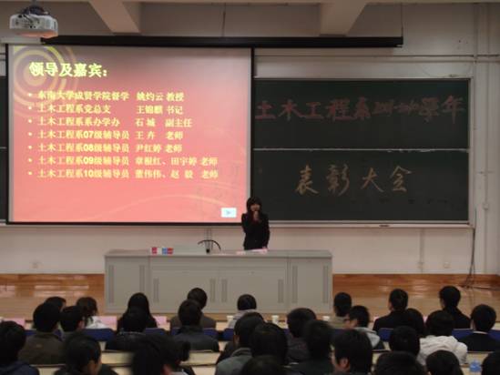 2010年11月25日下午3:30,土木工程系2009~2010学年表彰大会在文昌院112隆重举行。出席本次大会的领导和嘉宾有:bevictor伟德官网督学姚灼云教授,土木工程系党总支书记王锦麒教授,系办学办副主任石城老师,07级辅导员王卉老师,08级辅导员尹红婷老师,09级辅导员章根红、田宇婷老师,10及辅导员董伟伟、赵毅老师,土木工程系分团委书记孙琳玲老师主持表彰大会。