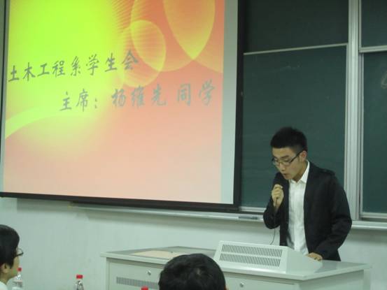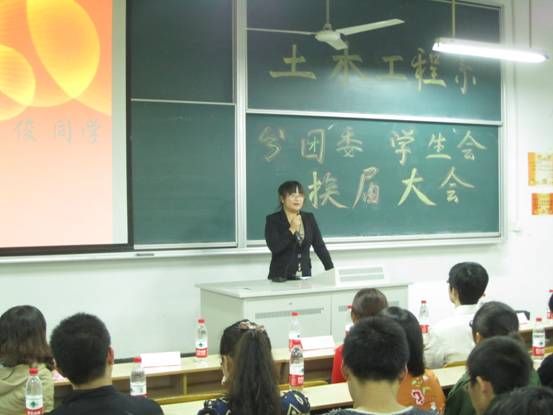 首先由土木工程系员工会2010-2011学年主席戴文雅同学代表发言,总结了上一学年员工会的各项工作。随后,土木工程系分团委书记孙琳玲老师宣读了2011-2012学年土木工程系分团委、员工会员工干部任命书。土木工程系分团委副书记王俊同学、员工会主席杨维先同学分别发表了自己的任职感言。接着,分团委书记孙琳玲老师为员工代表颁发了聘书。