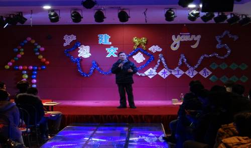 2013年12月24日晚,由土木工程系建筑工程与交通运输专业共同举办的“梦想建交,新飞young”迎新晚会在老员工活动中心圆满落下帷幕。土木工程系党总支书记王锦麒教授、土木工程系综合办主任石城老师,土木工程辅导员王卉老师,李胜玉老师,章根红老师和系员工会主席均前来观看此次迎新晚会。