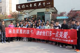 2014年3月26日,021132团支部来到南京爱德儿童发展中心,了解这个世界上一批特殊儿童——自闭症儿童的情况,带来了他们自己微小却用心的温暖,辅导员王卉老师全程参与并指导了活动。