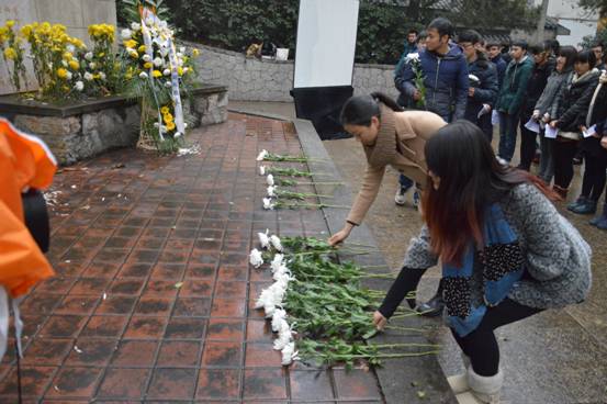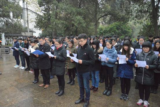 12月9日下午,公司土木工程系分团委与021132支部组织14级各支部代表和部分员工祭扫位于鼓楼东面的侵华日军南京大屠杀遇难同胞祭奠地——北极阁。本次活动由土木工程系分团委与021132支部举办,并由土木工程系分团委孙琳玲书记主持,土木工程系辅导员王卉、赵毅和薛超老师参加了此次活动。 祭扫活动准时开始,首先由南京广播电视台开展紫金草——紫色的哀思二维码扫码活动,同学们在四位老师的带领下依次扫码并领取紫金草徽章,接着在三行文墨掂哀思的海报上抒发悼念遇难同胞的哀思。第二项流程由土木工程系辅导员赵毅老师带领同学们朗诵诗歌,让我们铭记那段惨痛的历史,永存为中华之崛起而读书的信念。最后由孙琳玲书记带领同学们默哀三分钟,铭记我们身上的重担。在首届南京大屠杀死难者国家公祭日来临之际,让每一名同学明白自己的历史使命,牢记历史,勿忘国耻。