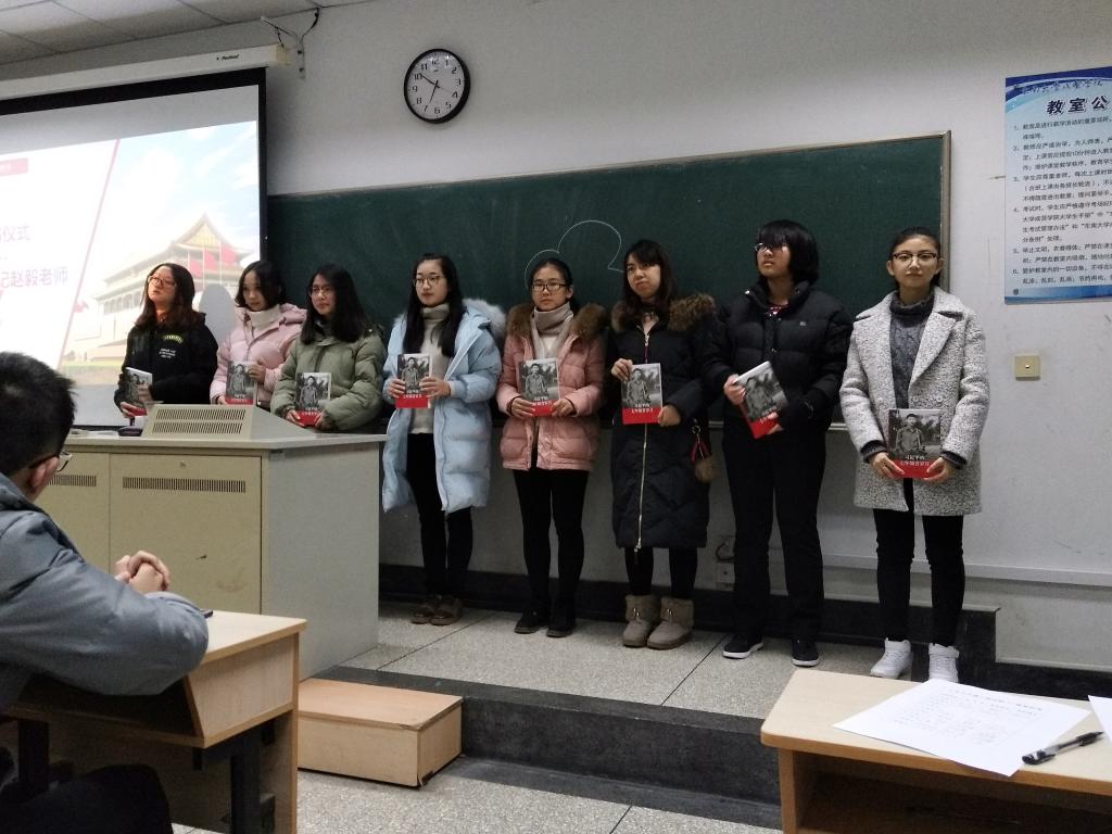 大会第二项,由赵毅老师为17级团支委授书——《习近平的七年知青岁月》