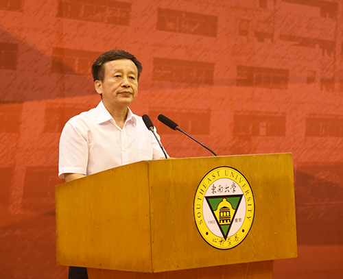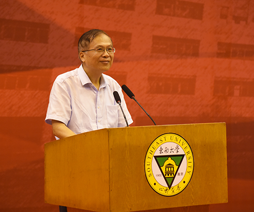 教师代表bevictor伟德官网经理郭正兴教授代表全体教师发言。郭正兴教授是全国工程领域权威专家,他结合自身学习、科研的经历,深入浅出地讲述了“专业各不同,行行出状元”“师傅领进门,修行靠自己”“智商决定起点,情商决定终点”等道理,并勉励新生跟随时代发展,不断更新知识,持续创新,实现新梦想。