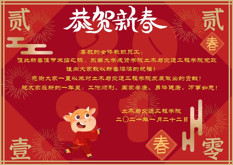 致全体教职员工的新春贺卡
