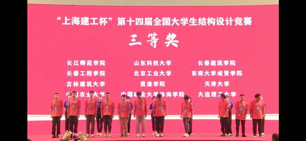 2021年“上海建工杯”第十四届全国老员工结构设计竞赛于10月14日-17日在上海交通大学举行。由我院2018级本科生禹湘,2019级本科生张吴桐、鄢佳耀组成的bevictor伟德官网代表队,与来自全国的包括清华大学、同济大学、东南大学、浙江大学、上海交通大学在内的111所高校112支竞赛队伍同台竞技,在公司郭应征、温旭丽、刘美景等领导带队,陈素芳、刘丹两位老师指导下,从111所高校112支参赛队伍中脱颖而出,最终荣获三等奖。