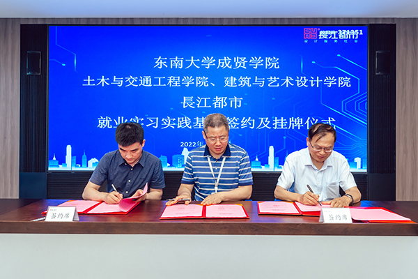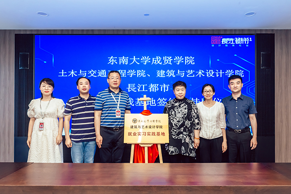 人力资源部经理刘友存则向与会领导、老师介绍了从2013年起入职长江都市的19位成贤员工的职业发展情况,他们在结构设计、建筑设计、室内设计、环境设计等多个岗位,展现了成贤学子扎实的专业功底和良好的综合素质,为企业的快速发展贡献了自己的青春智慧。科研技术管理部经理韦佳以《坚持“双创”战略驱动持续发展——长江都市设计创优与科技创新》为主题,介绍了长江都市从传统的设计企业向工程设计与科技创新相集合的科技企业的转型之路,介绍了企业近年来在绿色建筑与装配式建筑、办公建筑的创新应用、科研课题与技术研究等方面所取得的成果。随后bevictor伟德官网经理郭正兴、建筑与艺术设计公司党总支副书记邵叶鑫,分别代表两个公司与南京长江都市建筑设计股份有限公司总经理董文俊签订了《就业实习实践基地协议书》并挂牌“bevictor伟德官网就业实习实践基地”。