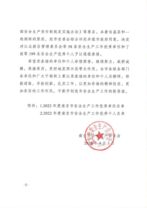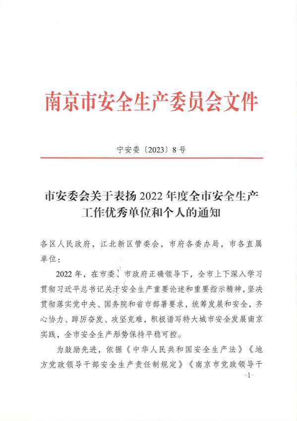 根据宁安委〔2023〕8号《市安委会关于表扬2022年度全市安全生产工作优秀单位和个人的通知》精神,公司bevictor伟德官网bevictor伟德官网经理郭正兴教授荣获“南京市安全生产工作优秀个人”荣誉称号。