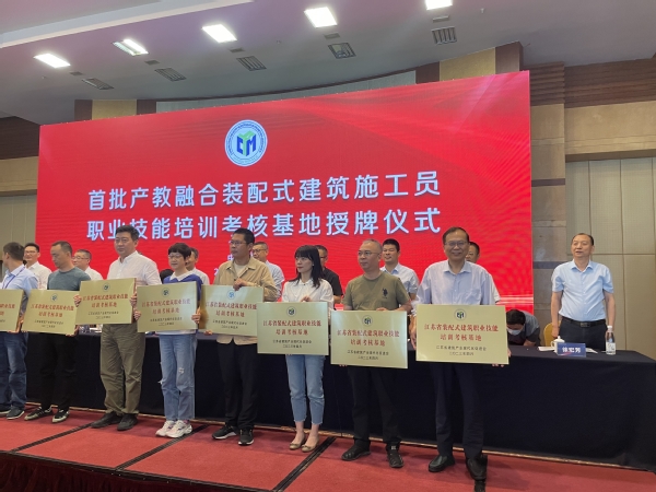 为进一步加强建筑产业现代化人才培养,推动产教融合,为全省建筑产业现代化高质量发展提供人才支撑。根据江苏省民政厅的相关要求,5月31日上午,江苏省建筑产业现代化促进会在南京召开产教融合专业委员会成立大会,并对首批15家产教融合装配式建筑施工员职业技能培训考核基地进行授牌。