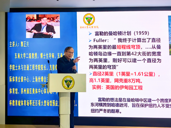 第九届亚洲冬季运动会于2025年2月7日—14日在哈尔滨成功举办,其开幕式和闭幕式均在哈尔滨国际体育会展中心举行。郭正兴经理以他在哈尔滨国家体育会展中心工程现场主持的我国首个跨度为128米的张弦梁钢屋盖预应力拉索施工实践为案例,介绍该工程技术创新和攻坚克难的详细过程及体会,并分享后续在上海世博会主题馆、新疆乌鲁木齐会展中心等超百米跨张弦梁的重大工程施工创新体会。讲座中,郭正兴经理寄语同学们在未来的大学学习、生活中要具备天马行空的梦想和追求,更要有敢为人先的勇气,平时注意关注学科交叉,强化动手能力训练,培养团队合作精神,不断提升创新素质能力,做“新时代”的“新工科”人才。