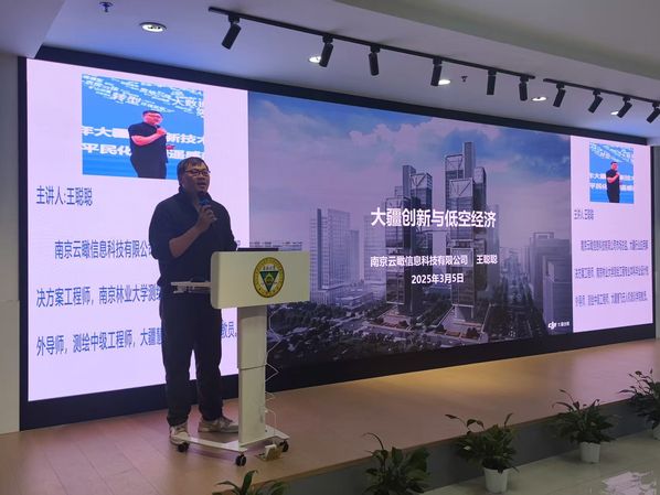王聪聪总监在无人机行业应用解决方案方面有着丰富的经验,曾担任南京林业大学测绘工程专业本科毕业设计校外导师,并在大疆慧飞无人机培训公司任教。他结合自身工作经验,深入浅出地介绍了低空经济的相关概念和政策,并对无人机行业头部企业大疆创新的产品和相关解决方案进行了详细介绍。