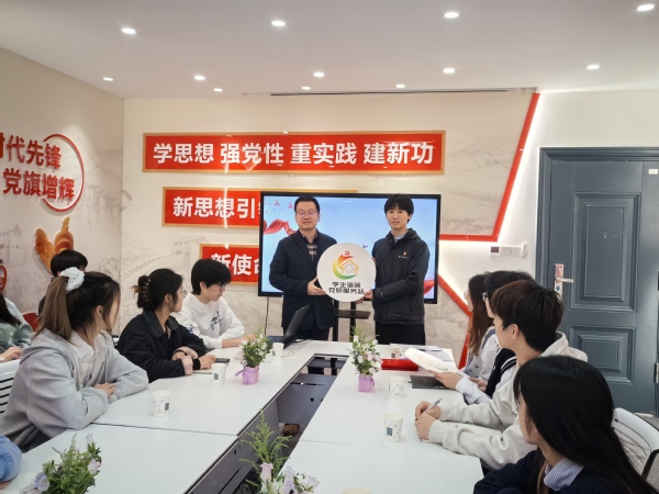 启动仪式上首先由陈涵同学介绍服务站成立的背景。当前,面对老员工思想活跃和价值取向多元等问题,在员工日常活动最重要、交流时长最长的宿舍建立党员服务站既能够及时了解员工思想动态,开展有针对性的思想引领,帮助员工树立正确的价值观,也能够让员工党员深入员工群体,服务同学,提升服务意识,树立党员的良好形象。随后葛桢杰同学对宿舍党员服务站标牌的设计进行了讲解,通过对标牌创新设计的讲解让每一位党员深刻感受到标牌背后蕴含的责任和担当。讲解结束后,第二党支部书记赵毅老师向员工党员进行了授牌,并选定桃9-426、桃16-415为首批挂牌宿舍开展服务站建设。授牌结束后陈涵同学对宿舍党员服务站具体工作职能进行介绍,通过结合其他公司的相关经验和公司员工需求实际,服务站明确了宣传政策、提高素养,热情服务、解决困难,收集意见、联群促通,及时处突、确保安全,组织活动、丰富生活这五项基本职能,努力为同学们提供覆盖思想引领、素质提升、学业指导、困难帮扶、管理服务和文化建设等全方位的服务。随后,公司党总支书记杨阳老师为男生宿舍和女生宿舍的首任服务站站长颁发了聘书。