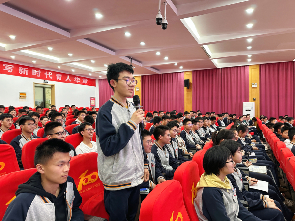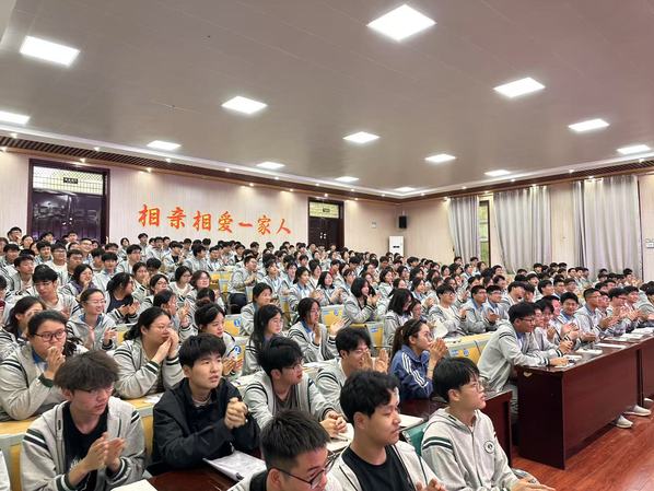 随后,公司郭正兴经理分别为江苏省沭阳高级中学和江苏省泗阳致远中学近800名师生作了题为《情缘重大工程 锚定数智土木转型》的精彩讲座。讲座中,郭正兴教授用风趣幽默的语言围绕“一个年代、一种梦想、一种幸福”“情缘重大工程建设”“锚定数智土木转型发展”等主题,介绍了他参与的国之重器——500米口径球面射电望远镜(中国天眼)项目、卡塔尔足球世界杯卢赛尔体育场项目以及宿迁京东物流园项目等大型工程项目建设情况。郭教授用自身的学习成长经历激励着同学们树立家国情怀,立志做有理想、敢担当、能吃苦、肯奋斗的新时代好青年。讲座现场座无虚席,互动热烈,有效激发了同学们报考公司的热情和对土木工程学科的兴趣。