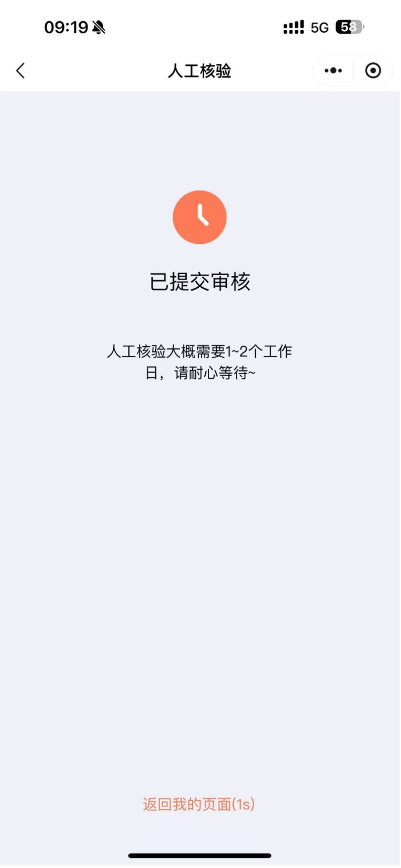 在弹出的页面中耐心等待审核通过后,即可开通高校智盟卡。(如下图所示)