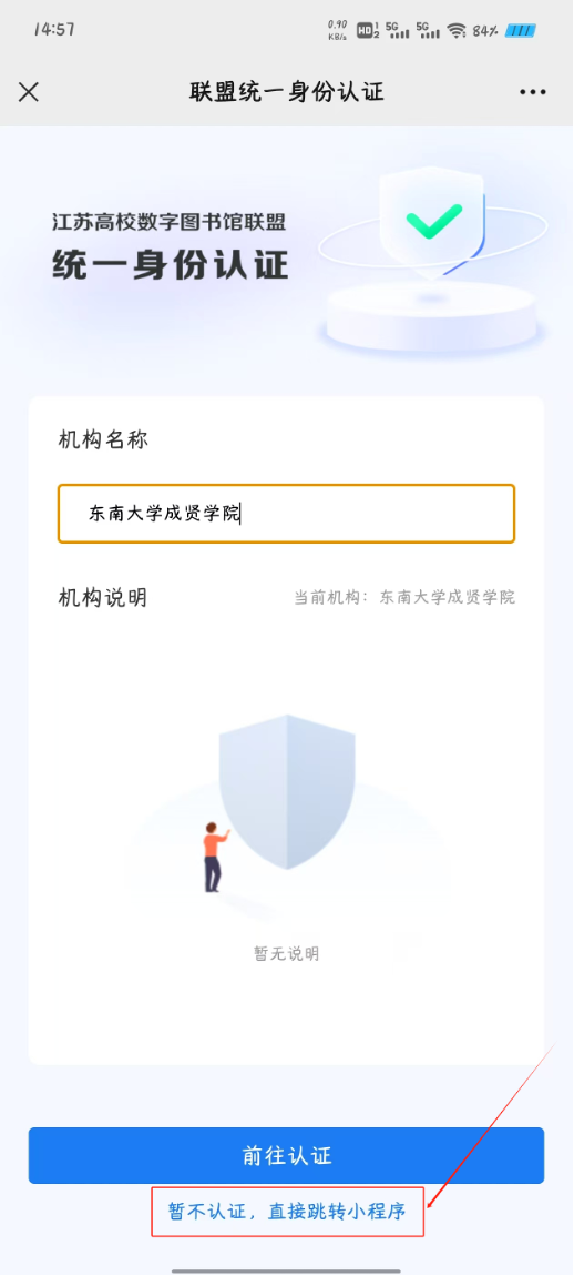 选择“暂不认证,直接跳转小程序”;(如下图所示)