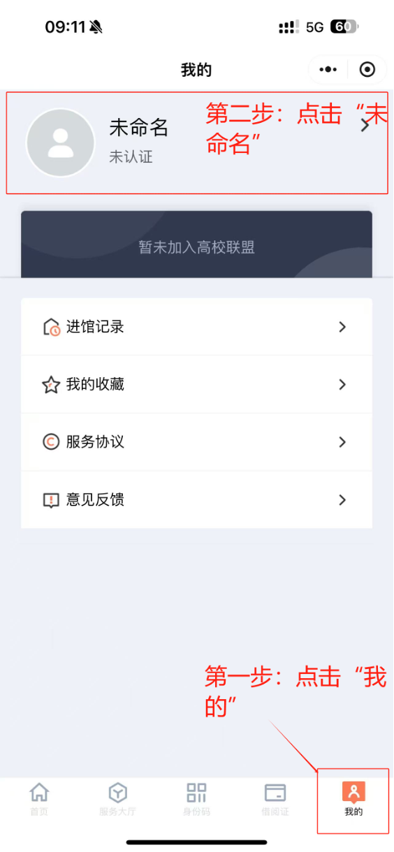 在弹出的页面中选择右下角“我的”,选择“未命名”;(如下图所示)