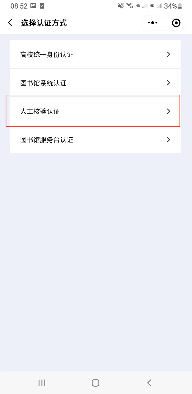 在弹出的页面中选择“人工核验认证”;(如下图所示)
